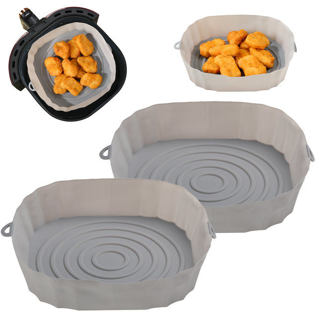 O nosso Kit 3 Bandejas de Silicone Permanente para Air Fryer foi feito para economizar tempo, limpando a gordura e sujeira acumulada na parte interna da Air Fryer. Feita com silicone Premium, antiaderente, à prova de óleo, não pegajoso, 100% saudável, boa resistência ao calor, e pode suportar temperaturas até 428 graus. Possui também espaços no fundo que retém a gordura, cumprindo a função de uma grade de fundo.
